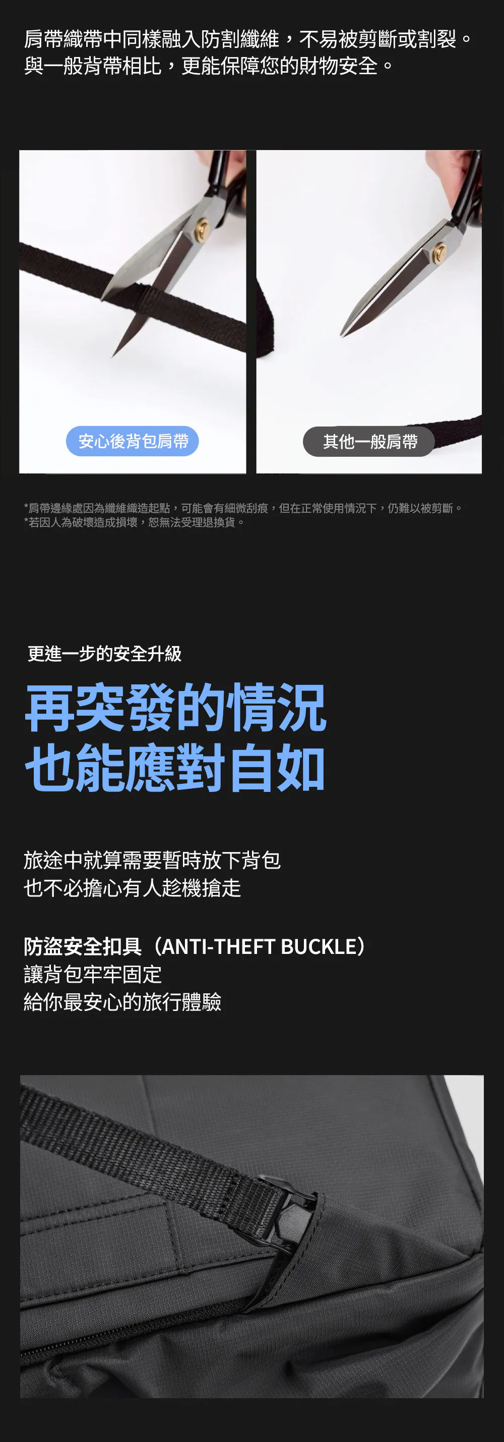 韓國品牌Branden推出防盜旅行背包Safe Backpack,容量高達21L,完全滿足短程旅行所需,Hand Carry上機無難度。特殊防割防剪防水織布,配合RFID防盜暗袋,目前防盜性能最強的背包。整個背包只有610g,比起市面背包更輕巧,陪伴你輕鬆旅程。