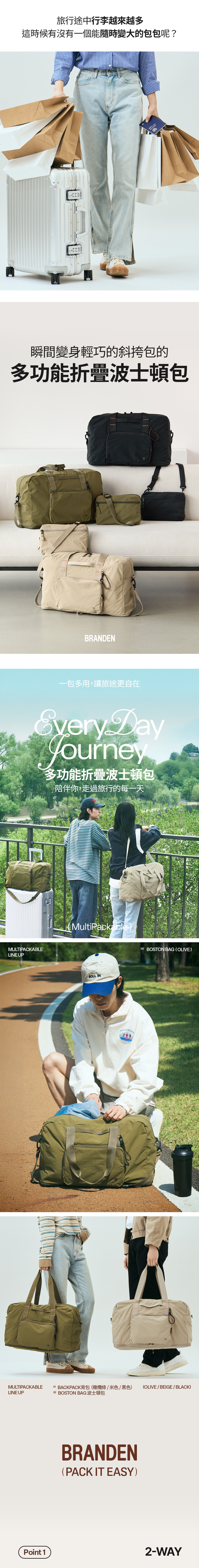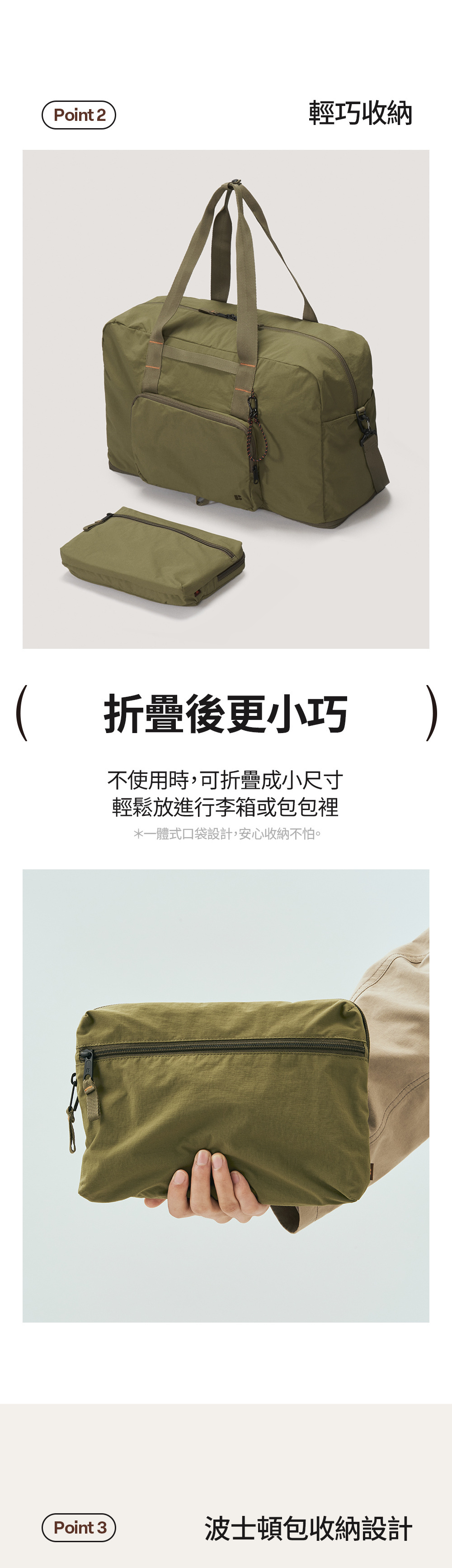 可擴展背包Multi Packable Boston Bag,可以從輕巧的29L擴展到大容量36L,完全按需要自由調整,36L容量足夠擺放3天旅行所需,採用防潑水尼龍布料,不用擔心突然下雨,把裡面的物品淋濕。更在20000名用家回饋中激獲4.5/5分,深受各國人士喜歡。